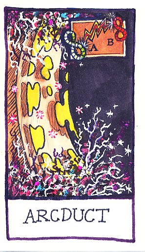 When two universes of differing metacosmic potential begin to collide, hyperdimensional streamers of fundamental energies, called unoplasm are pulled out of one universe into the other. Like two stars of differing size colliding, the universes pull matter, energy, space, and time in long streams and rivers through hyperspace, as they collide, and ultimately destroy -or merge- with each other. This horrendous phenomena is called an Arcduct, and it is like a river of lava and a hurricane together, flowing through hyperspace, from one cosmos to another, as the two universes gradually collide. Sometimes two, or more, universes may actually go into a kind of 'hyperspace orbit' around each other, balanced from total collision, but bridged by an Arcduct. It is quite a feat to survive riding such a cosmic river....