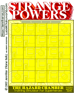 Strange Powers is a puzzle game which centers around a group of superheroes training inside a battle simulator. The simulator, called the Hazard Chamber, is run by the Superhero University of California, and is open to all enrolled students, or can be used for training by professional superheroes for a fee. Many superheroes and superhero teams buy time in the Hazard Chamber, and this supports the University.