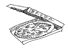 The driver fumbled with the bill as he pulled the pizza from its wrap, as if it were a magician's rabbit in a top hat. "That's $15.93 with the drinks. Shit, the drinks! Here, take your pizza while I get your cokes."