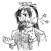 Eventually, he decided to try the sympathy scam. Two sticks of stale gum came out of his jacket pocket. They softened up after a few minutes of vigorous chewing. As he chewed, a dirty bandana was unfurled from his pocket and twisted once or twice. Then he wrapped it under his chin and over the crown of his head and tied it so that it supported his jaw.
