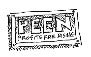 He pressed an intercom button, and within seconds a toady in a business suit hopped into his office, eager to serve. "Yes Mr. Peen?"