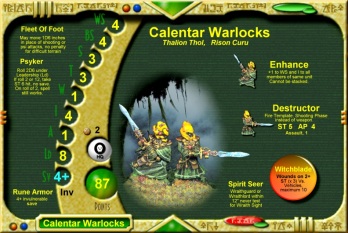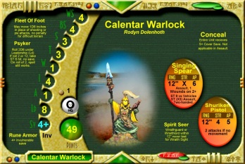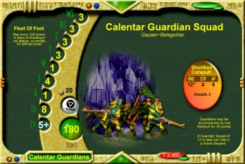 Click on any army card to learn about the Calentar Eldalon Eldar, their world, and their battles.