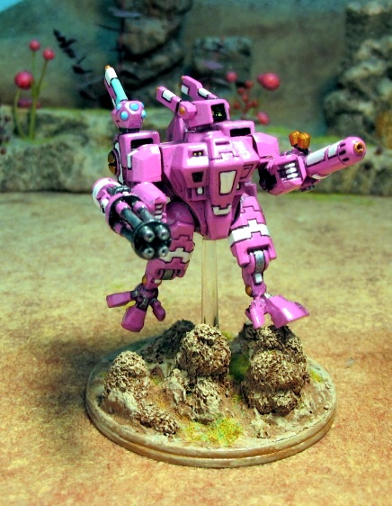 I choose to add Vectored Thrusters because the notion of the hit and run rule seemed very useful to me, and it has been just that, considering how terribly weak a Tau Crisis Suit actually is in melee combat. One would think that a mech large enough to house a man would pack a serious punch, but in hand to hand combat, this hulking battlesuit is less powerful than a single Space Marine in light power armor.
